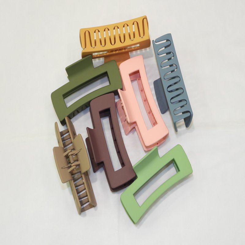 7 pieces of large rectangular matte hair claw clips in assorted colors.